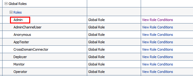| To make it feasible we have to setup on WLS console manually after you successfully set up LDAP Authentication provider in WLS. First logon WLS console as the DB user, go to Security Realms >AgileRealm >Realm Roles, then expand Global Roles | Roles | Admin, click View Role Conditions link. |