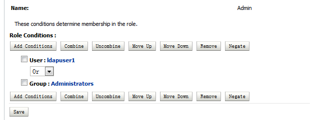 Add a new OR condition “User ldapuser1” with Administrators group. Enable the modification, then user ldapuser1 is able to logon WLS console.