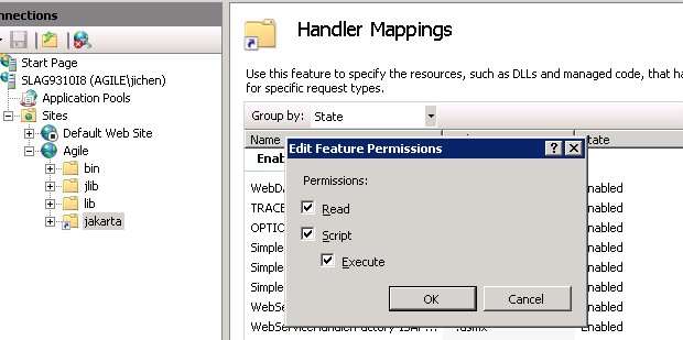 4, Go to “Handler Mappings”, click link of “Edit Feature Permissions”, select all of “Read”, “Script” and “Execute” checkboxes.