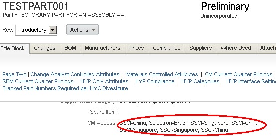 Suppose we have one Part object TESTPART001 which has multiple values for “CM Access” attribute like below.
