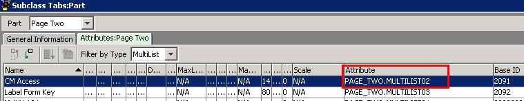 We need to figure out this attribute’s table and column name in database. Since this “CM Access” attribute is from Page Two page, so we go to Part’s subclass Page Two tab in JavaClient. We get “PAGE_TWO.MULTILIST02”. That is to say, the attribute value is saved in Page_two table, multilist02 column.