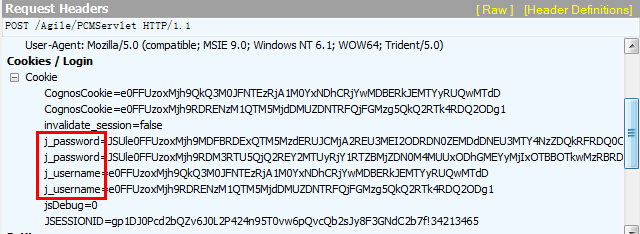 “User: e0FFUzoxMjh9QkQ3M0JFNTEzRjA1M0YxNDhCRjYwMDBERkJEMTYyRUQwMTdD” is a j_username from cookie because in URL-PX we use below sample code to retrieve browser session’s cookie to connect to Agile.