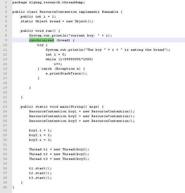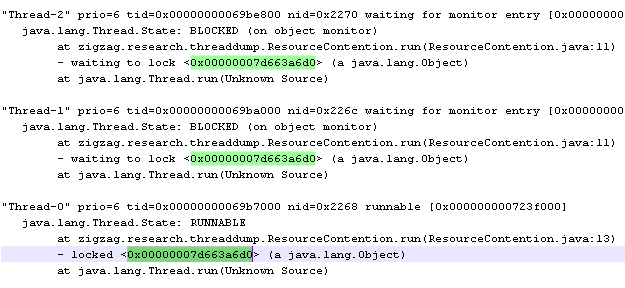 E:\>java -classpath . zigzag.research.threaddump.ResourceContention
