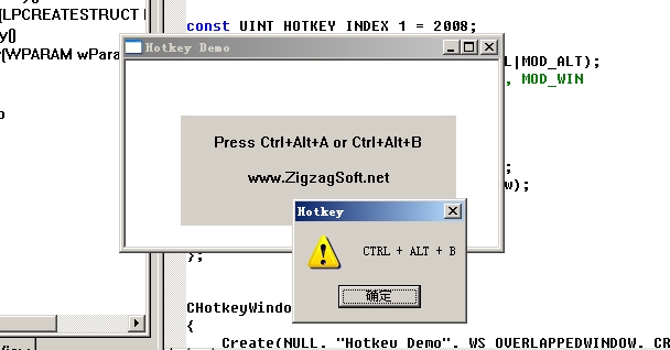 在窗口类的消息映像声明中加入一个OnHotkey的函数来处理WM_HOTKEY热键消息,同时在窗口类中声明该函数。